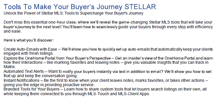 Tools to Make Your Buyer's Journey Stellar - Stellar MLS Class