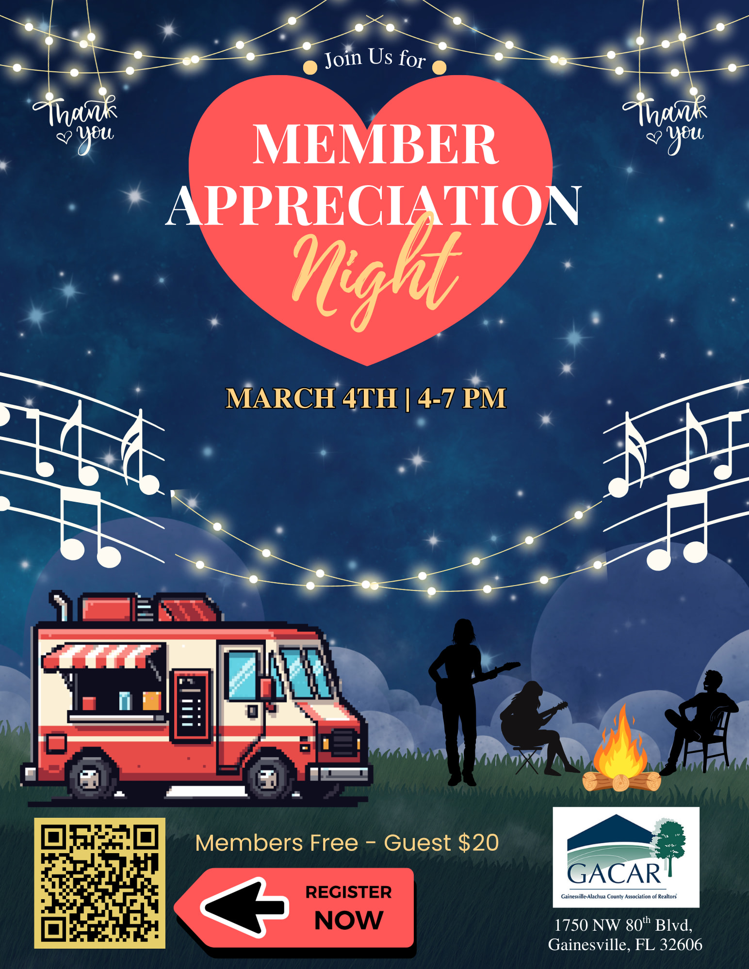 Come hang out on GACAR’s West Lawn, gather around the firepit, grab a drink, and enjoy the vibe! Stay for a few minutes or the whole evening with live music, a full bar, and a complimentary food truck — all to celebrate and thank you for being a member. It’s the perfect night for laughter, connection, and cozy fireside fun. Members free - Guest is $20